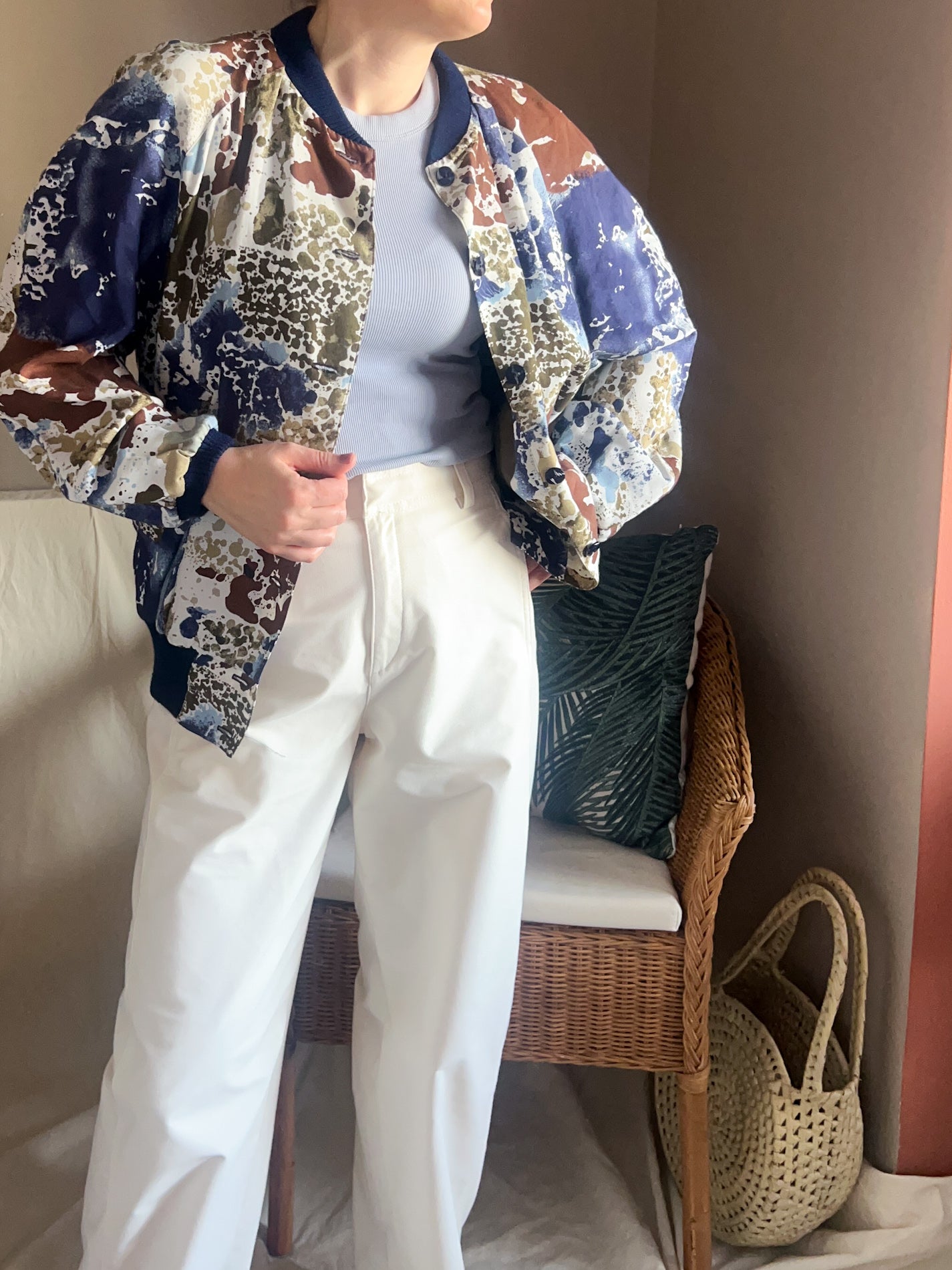 Vintage Abstract Paint Print Bomber Jacket, approx Size 10-14