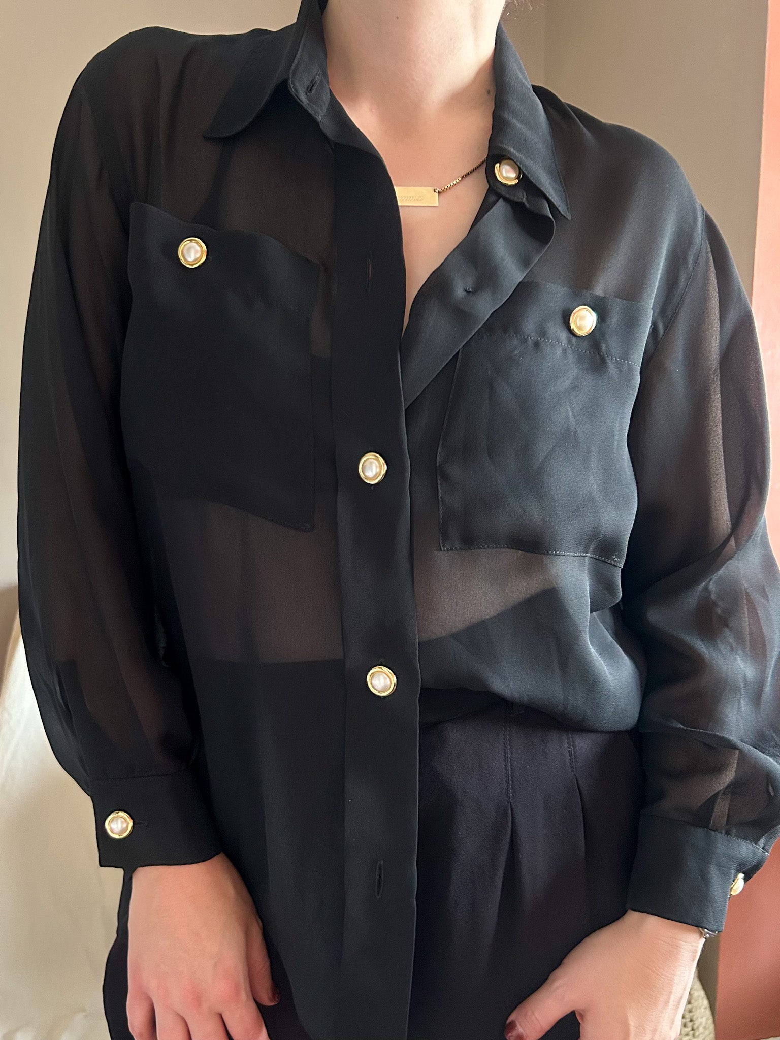 - Beautiful vintage sheer blouse with gorgeous gold & pearlised statement buttons